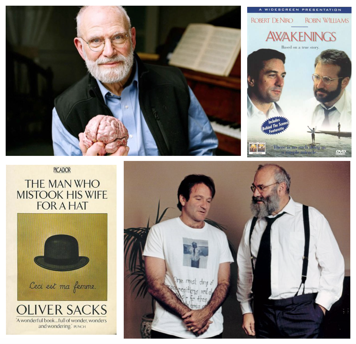 En -El hombre que confundió a su esposa con un sombrero- y -Un antropólogo en Marte- describió a los pacientes que lidiaban con diferentes trastornos desde el síndrome de Tourette al autismo, pasando por la epilepsia, el síndrome del elefantismo, esquizofrenia y Alzheimer.