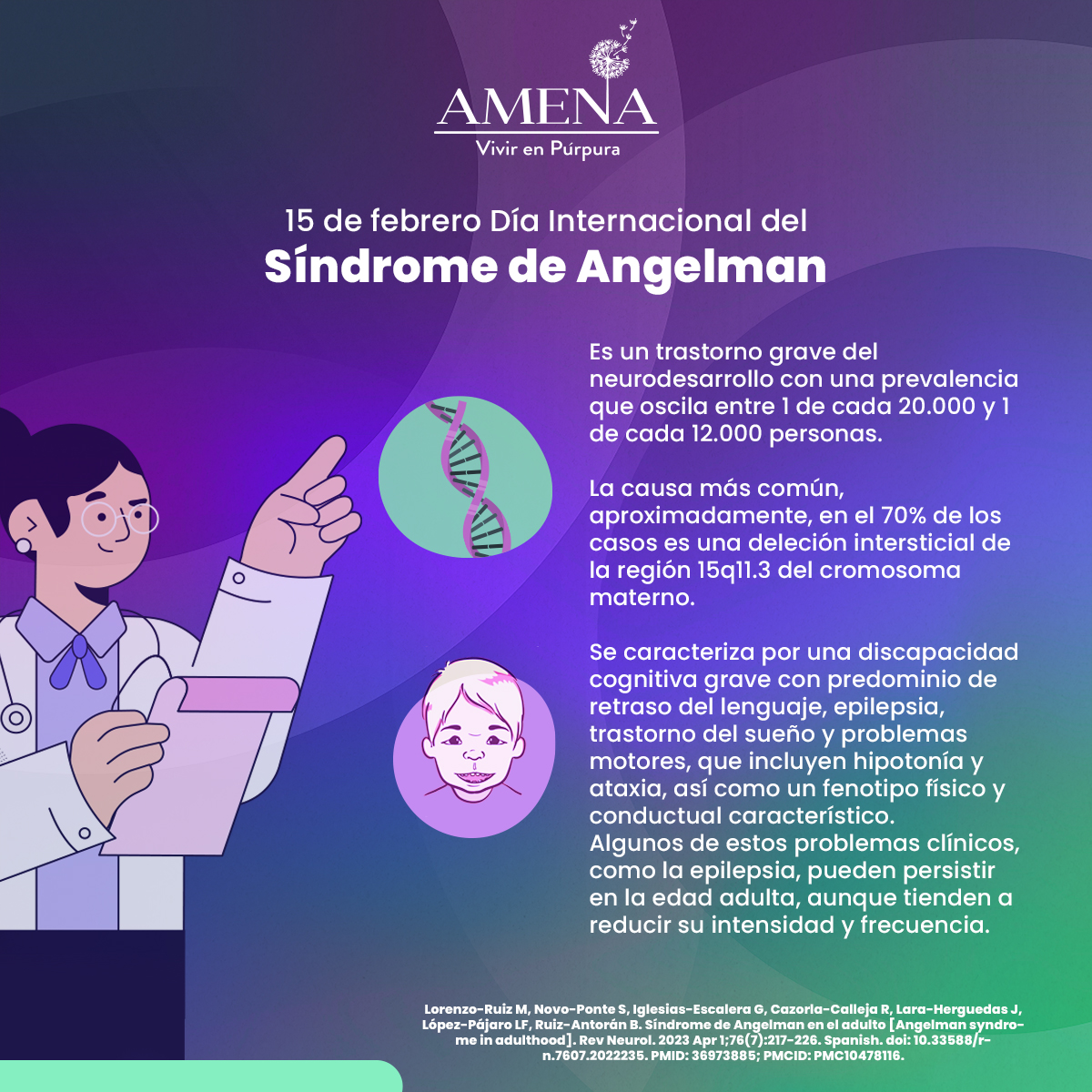 REF: Lorenzo-Ruiz M, Novo-Ponte S, Iglesias-Escalera G, Cazorla-Calleja R, Lara-Herguedas J, López-Pájaro LF, Ruiz-Antorán B. Síndrome de Angelman en el adulto [Angelman syndrome in adulthood]. Rev Neurol. 2023 Apr 1;76(7):217-226. Spanish. doi: 10.33588/rn.7607.2022235. PMID: 36973885; PMCID: PMC10478116.