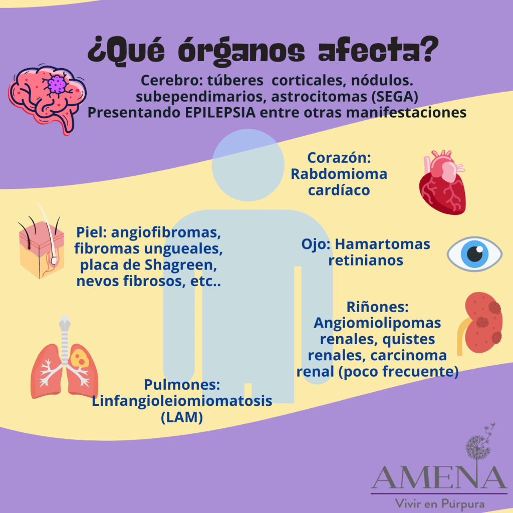 El espectro clínico de TSC es sumamente variable, incluso entre miembros de una misma familia. A continuación separamos las alteraciones más comunes en los diferentes organos: