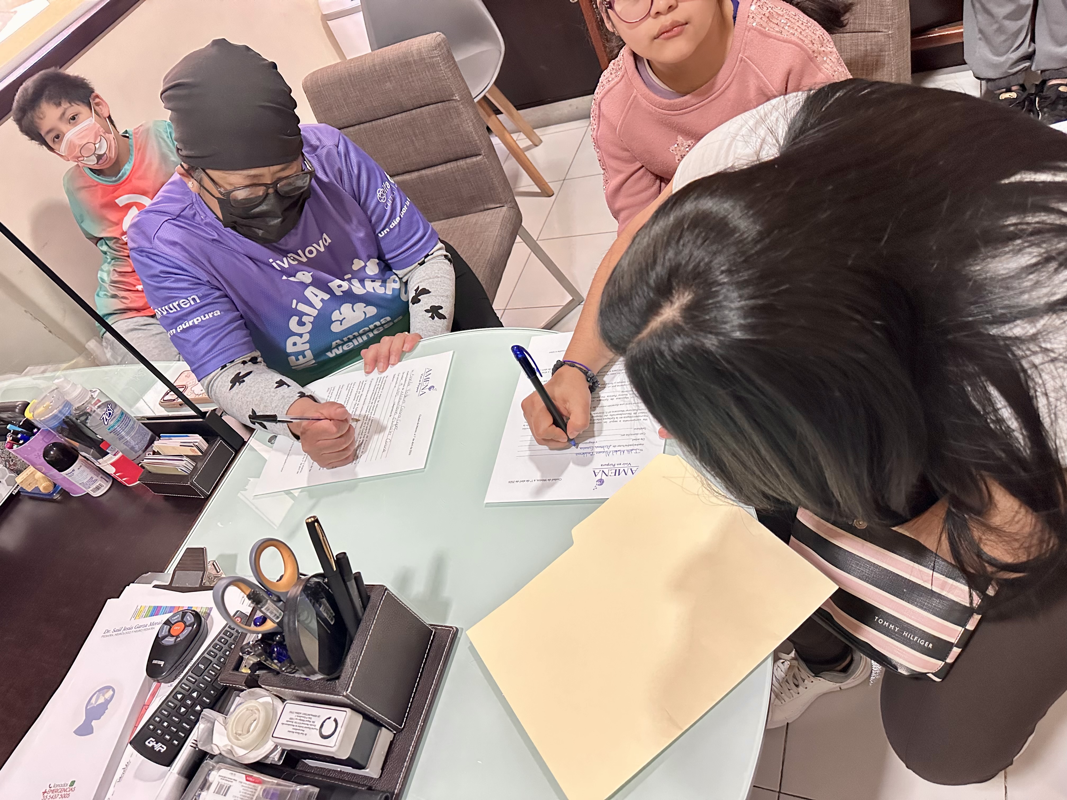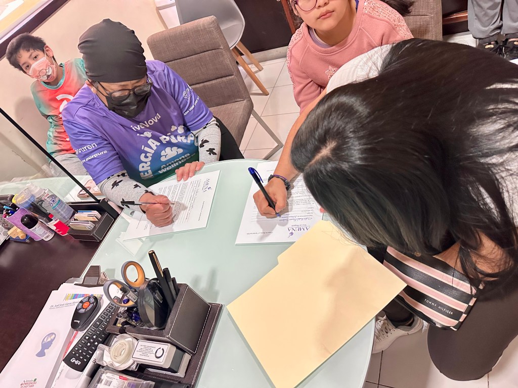 Hoy se presentó el plan de trabajo para dos familias de la Comunidad AMENA, quienes iniciarán su proceso en Neuroinfant, bajo la guía del Dr. Gabriel Perea. Se realizó la firma de la carta compromiso por parte de las tutoras y de la Mtra. Norma Hernández, en representación de nuestra asociación.