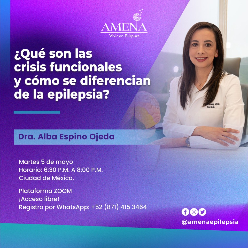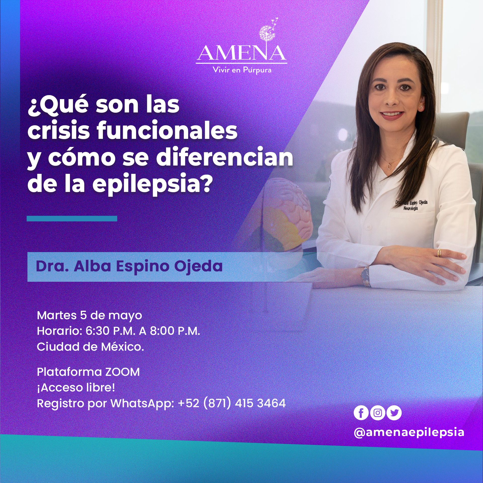 El martes 5 de mayo hablaremos sobre ¿Qué son las crisis funcionales y cómo se diferencian de la epilepsia? con la Dra. Alba Espino Ojeda